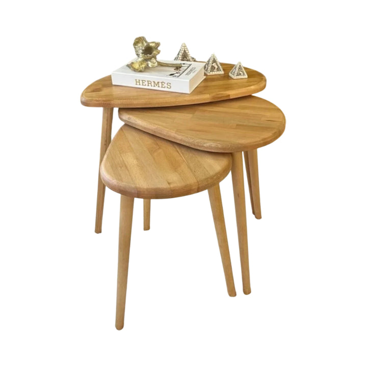 Valdivia | Solid Masif Doğal Ahşap Zigon Sehpa 3'lü Set